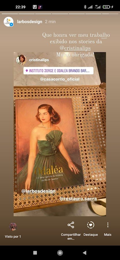 Diagramação e Projeto Gráfico para o livro “Odaléa: um belo capítulo da História do Rio de Janeiro”, que conta a biografia da socialite Odaléa Brando Barbosa, membro da alta sociedade carioca, que era dona de um dos palácios mais bonitos no Jardim Botânico do Rio de Janeiro, o qual depois de seu falecimento veio a se tornar o Instituto Brando Barbosa, onde, inclusive, ocorreu a Casa Cor Rio de Janeiro de 2021.